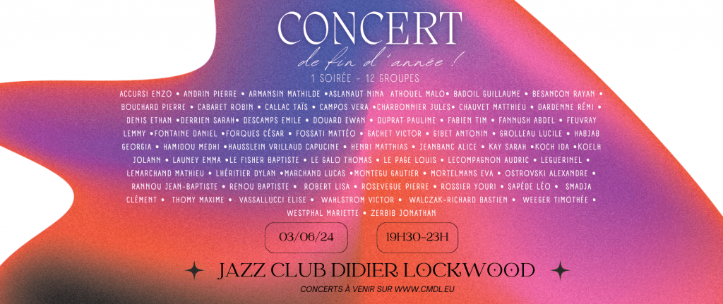Concert de fin de promo du CMDL, l’école de jazz et musiques improvisées Didier Lockwood. 12 groupes de jeunes professionnels